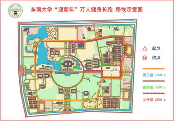 ⑴、竞赛组:男子跑学校内三环1圈(约4500米);女子跑内二环1圈(约3000米)。