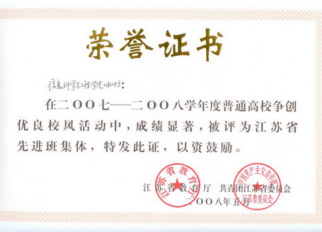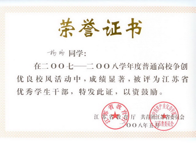 为认真贯彻落实《中共中央国务院关于进一步加强和改进大学生思想政治教育的意见》和《普通高等学校学生管理规定》,引导大学生坚定理想信念,勤奋刻苦学习,进一步在全省高校树立典型、表彰先进,展现新一代大学生积极健康向上的精神风貌,省教育厅、团省委决定,对陈星等868名省级“三好学生”、唐静等739名“优秀学生干部”和南京大学法学院2005级本科班等599个“先进班集体”予以表彰。