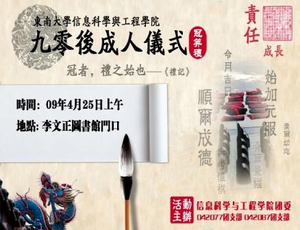 本次成人仪式将于4月25日(本周六)上午9点在李文正图书馆正门举行,届时将有古代汉服笄冠礼展示!