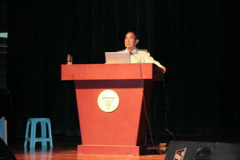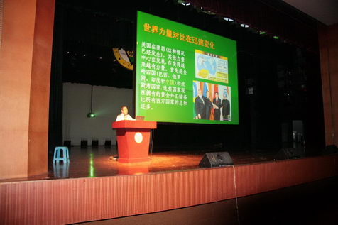 9月22日晚,校军事教研室董本植教授应yl23455永利官网邀请,来到九龙湖校区焦廷标馆大剧场做了主题为“喜迎国庆六十周年,展望国内外新形势”形势报告会,学院800余名本科生到场聆听。