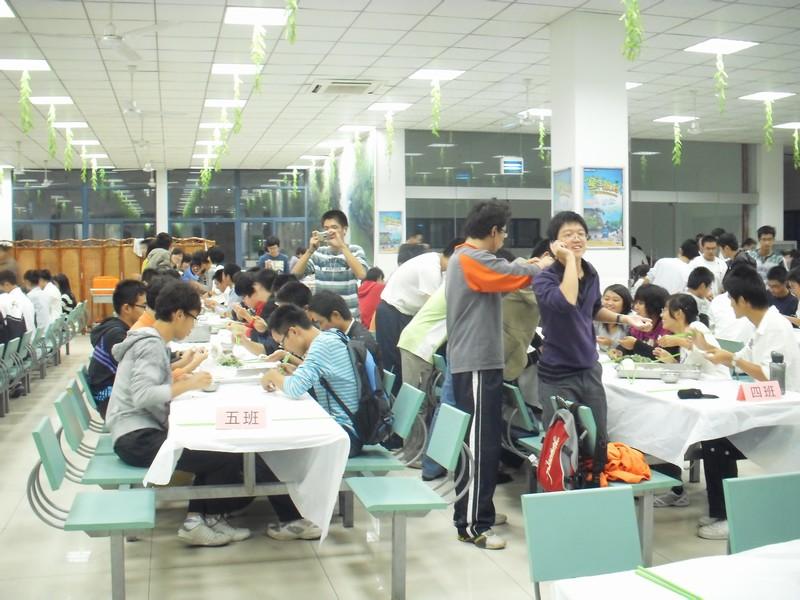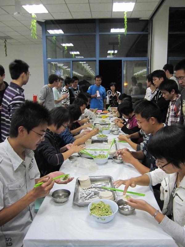 在桃园食堂二楼,七个班的同学热火朝天地包起了饺子。现场热闹非凡。此外,本次活动还设有包饺子,吃饺子的比赛。各班参赛选手在观战同学热烈的加油鼓劲声中,纷纷使出浑身解数,在速度,质量上互不相让,将气氛推向了高潮。
