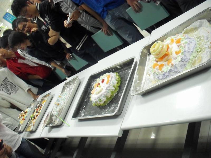 今年的饺子宴除了沿袭以往包,吃饺子比赛的优良传统外,还增加了温馨的生日许愿环节。由全体同学为当天过生日的四名大一同学庆祝,大家一起开心的唱生日歌,更是为活动增添了一抹温暖的色彩,而在最后的蛋糕设计环节中,同学们热情不减,各显神通,创意层出不穷,解说各有千秋,展现了90后的青春风采。