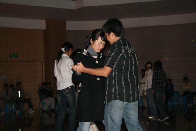 本次活动所邀请的舞协的舞者在舞台上展现了他们唯美的探戈舞,所有同学都围了上来,观看两名舞者沸腾一般的探戈,他们的动作的力度,节奏感深深的打动了现场的同学,许多同学都忍不住学着跳了起来,更多的同学则是鼓掌叫好,用照相机或是DV拍摄,想要珍藏这难得一见的探戈舞。舞者的探戈结束的一刹那,所有同学跳跃着欢呼,感谢他们的精彩表演。