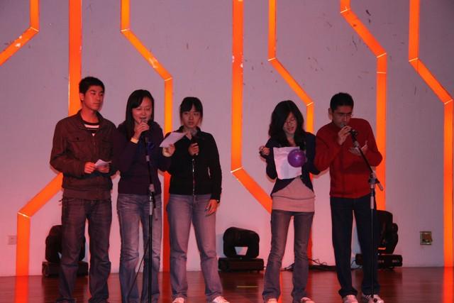 主持人邀请台下20为女生做寻找舞伴的游戏,20位女生要根据自己的号码在整个舞池中以最快的速度找到自己的舞伴,最先找到的3名女生和最后找到舞伴的3名女生将分别有不同的奖惩。由于游戏十分有趣,同学们在玩这个游戏的时候毫不疲倦,也体现了男女生之间的默契程度,更好的促进了他们之间的友谊。