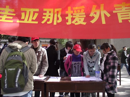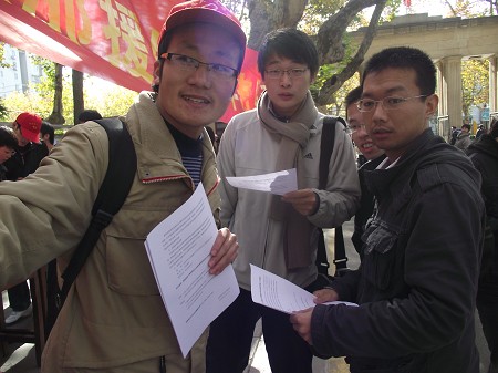 11月22日中午,在yl23455永利官网四牌楼校区的中央大道上,由共青团yl23455永利官网委员会主办、yl23455永利官网10级通信党支部承办的江苏海外服务计划赴圭亚那项目志愿者招募报名工作顺利完成。
