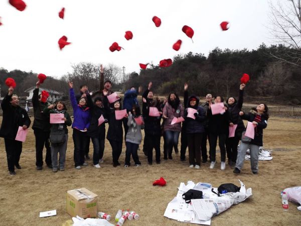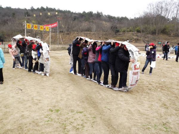 接下来所有党员们进行了素质拓展活动。在“五毛+一块”,“明七暗七”,“车轮滚滚”还有“二三平衡赛”四个活动中,老师与同学不分彼此,个个摩拳擦掌,奋勇争先。到了游戏结束时候大家都意犹未尽,在毕业“合照”时候大家都情不自禁的跳了起来。