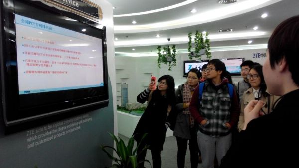 下午13:30分,卓工班同学从学校出发前往位于雨花区紫荆花路的中兴通讯股份有限公司。虽然寒风料峭,同学们却依旧热情高涨。首先参观的是中兴通讯在南京的研发中心展厅,在这里同学们了解了中兴通信公司概况,从企业发展到产品展示,以及最终企业荣誉,让同学们认识到不管是个人还是企业,想要在社会中不断发展下去,凭借的是一次又一次的创新,以及稳扎稳打的实力。