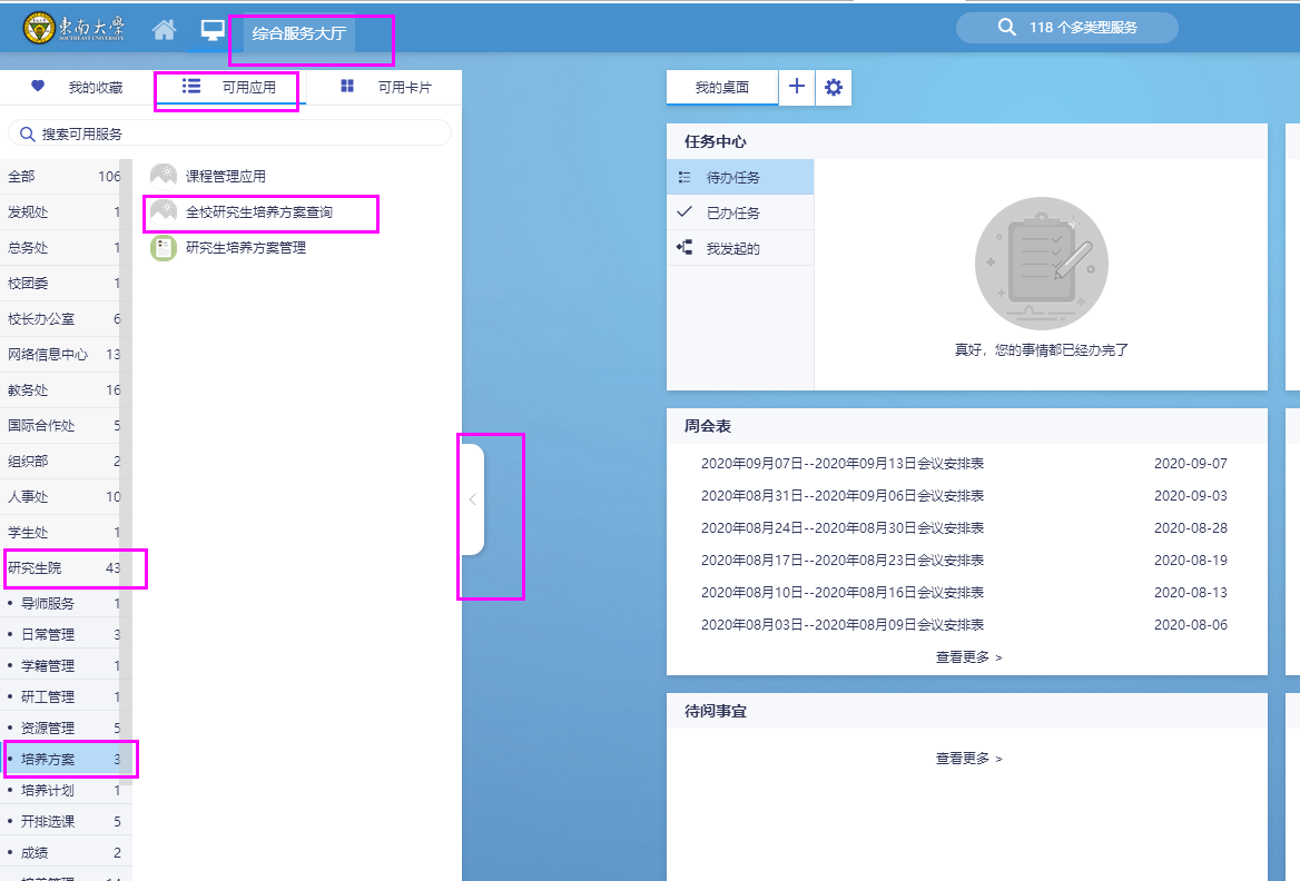 ③【信息门户my.seu.edu.cn】-【网上办事大厅(ehall)】也可以查询【全校培养方案】