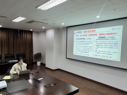 科研院知识产权与成果办公室徐仕颖老师随后对2023年国家奖、江苏省奖、教育部奖、学会奖、专利奖以及社会力量奖的举办时间、形式及奖项内容进行了宣讲,并向学院提出了“瞄准国家奖、省(部)一等奖、重点学会一等奖”、“加强社会力量奖的申报和组织力度”以及“加强专利奖的申报和组织力度”三点目标希冀。