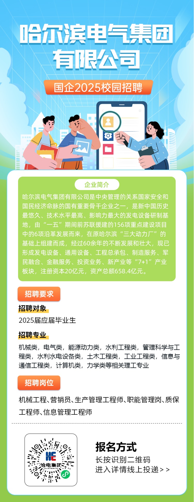 哈尔滨电气集团有限公司是中央管理的关系国家安全和国民经济命脉的国有重要骨干企业之一,是新中国历史最悠久、技术水平最高、影响力最大的发电设备研制基地,由“一五”期间前苏联援建的156项重点建设项目中的6项沿革发展而来,在原哈尔滨“三大动力厂”的基础上组建而成,经过60余年的不断发展和壮大,现已形成发电设备、通用设备、工程总承包、制造服务、军民融合、金融服务、投资业务、新产业等“7+1”产业板块,注册资本20亿元,资产总额658.4亿元。
