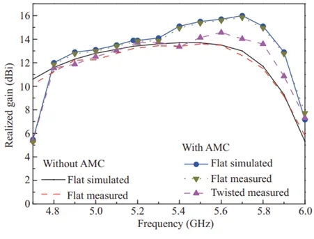 (3) 通过引入AMC平面,有效降低了天线在与人体手臂模型贴合时的SAR值(0.113 W/kg),确保用户安全。同时,AMC平面将辐射波反射至上方空间,进一步提高了天线的辐射增益。