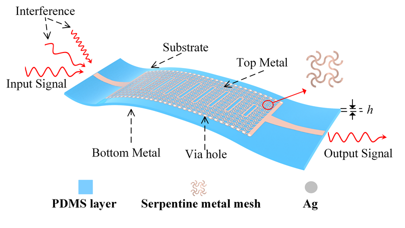 2024年,yl23455永利官网柔性射频技术研究中心在《IEEE Transactions on Microwave Theory and Techniques》期刊(影响因子:4.5)发表了题为“Flexible and Stretchable Microwave Filter Based on Substrate Integrated Plasmonic Waveguide”的研究论文,以下为具体介绍。作为无线可穿戴系统的关键组件,射频器件需要具备高电磁稳定性以确保可靠的通信质量。然而,在机械变形的情况下保持其性能则面临重大挑战。针对上述问题,本研究提出了一种实现柔性可拉伸微波滤波器的新策略,该滤波器